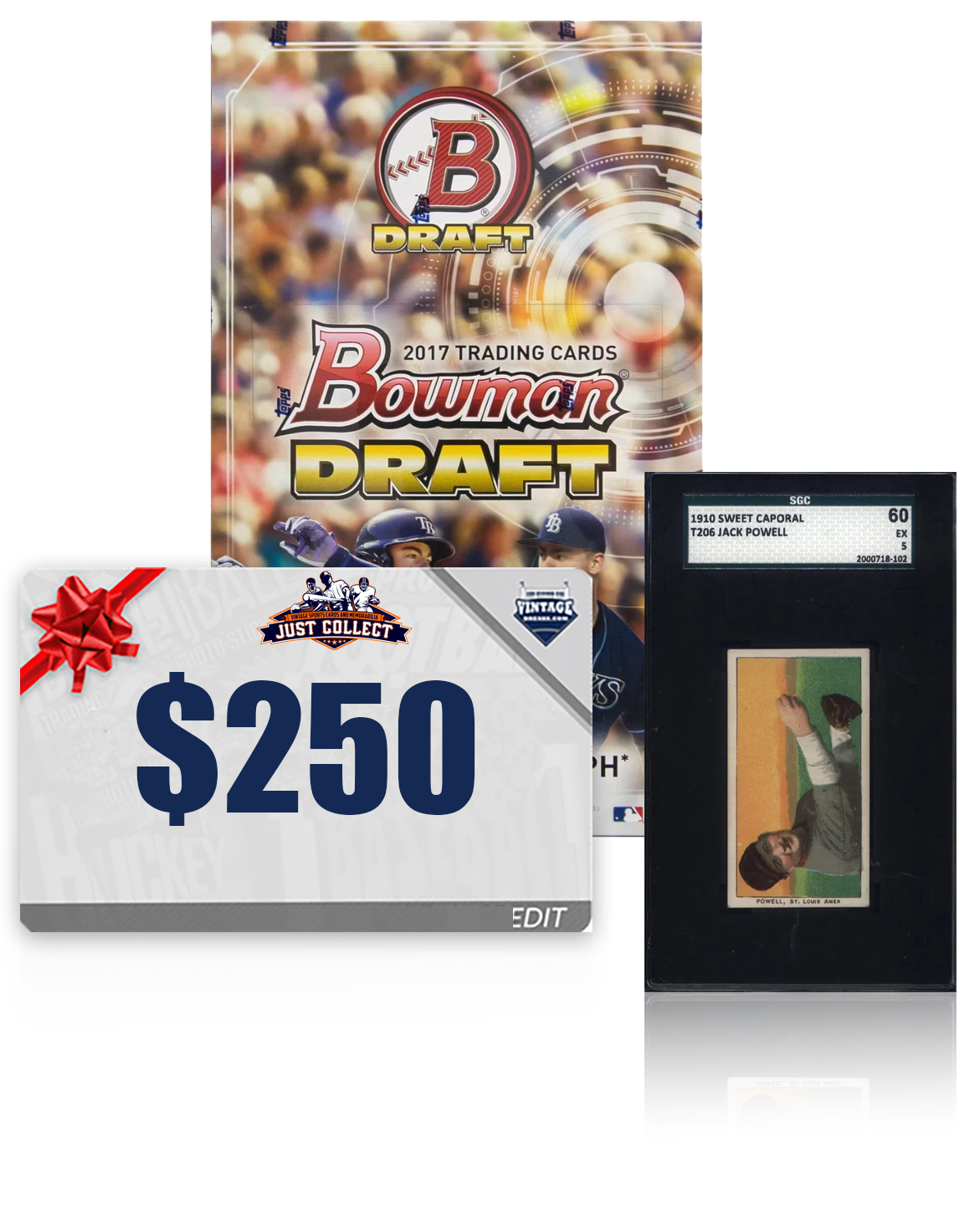 Enter for your chance to win a 2017 Bowman Draft Jumbo Hobby Box, 1920 W520 Zach Wheat SGC 3, 1954 Topps Gil Hodges SGC 5 and more!