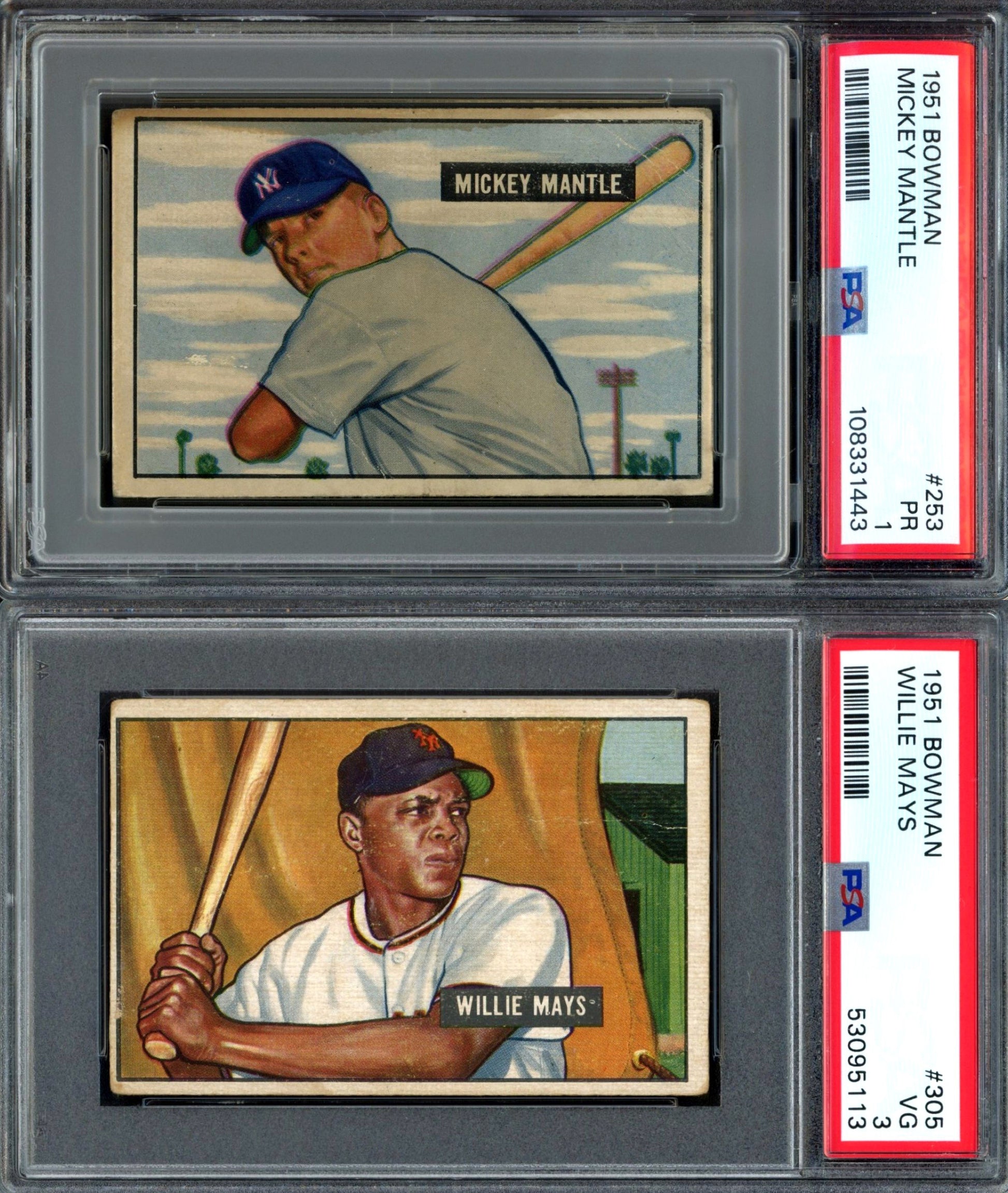 The balance of the set is ungraded and ranges mainly from PR to VG/EX and averages GD to VG with some better/lesser. Some of the other key cards include: #1 Whitey Ford Rookie (PR), #198 Monte Irvin Rookie (GD), and #32 Duke Snider (GD). 324 cards total in the 1951 Bowman set. 324 spots total.