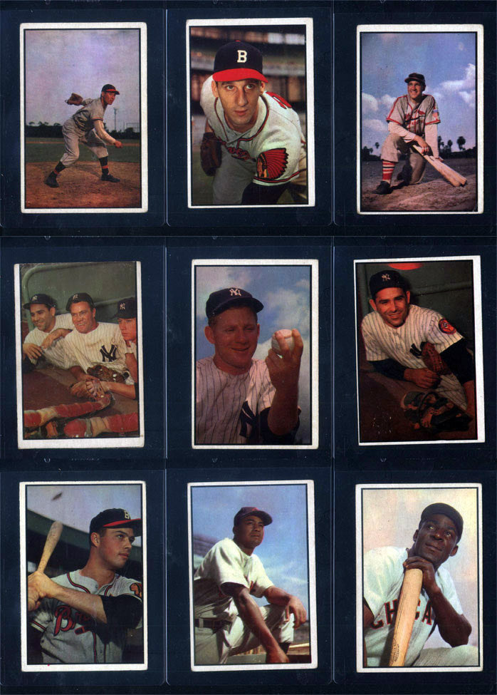 The balance of the set is ungraded and ranges mainly from VG to EX/MT and averages VG/EX to EX with some better/lesser. Some of the other key cards include: #36 Minnie Minoso (VG/EX), 40 Larry Doby (VG/EX), 44 Mantle, Berra, & Bauer (VG MC), 81 Enos Slaughter (VG), 92 Gil Hodges (VG), 97 Ed Mathews (VG+), 99 Warren Spahn (VG/EX), 114 Bob Feller (VG), 118 Billy Martin (VG+), 121 Yogi Berra (Authentic), and 153 Whitey Ford (VG+). 160 total cards are in this 1953 Bowman Color Baseball set break. 160 spots total.